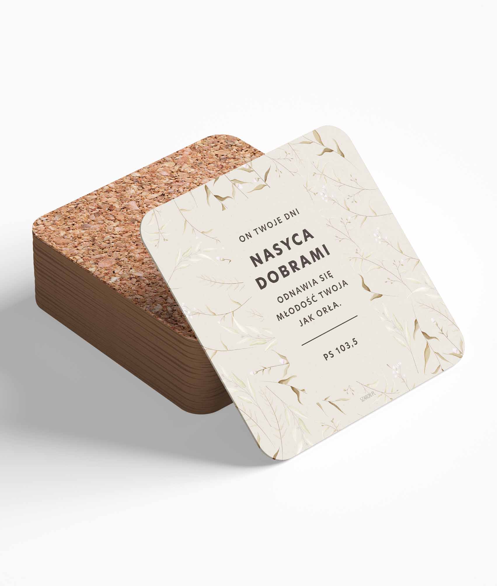 Wprowadź do swojego domu inspirację płynącą z Psalmu dzięki eleganckiej podkładce z naturalnego korka. Format 10 cm x 10 cm pozwala na wygodne użytkowanie w każdym miejscu.